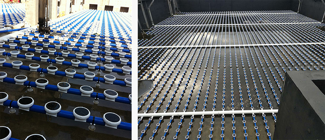 KKI系列曝气器适用于连续曝气和间歇式曝气工艺中,适用性很强。尤其在间歇式曝气工艺中表现良好,因为它的双重止回功能。